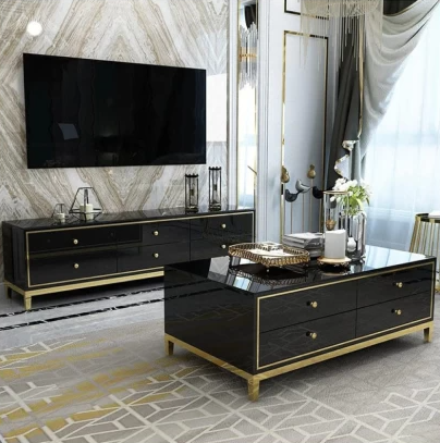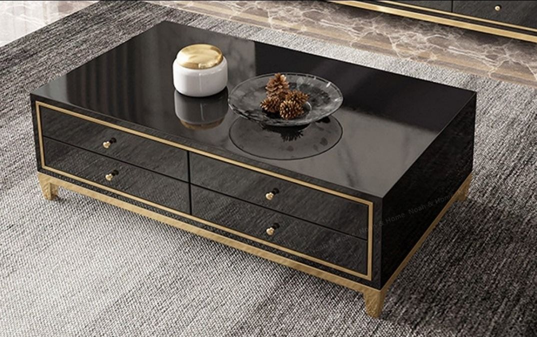 Manhattan 8 Drawer High Gloss Coffee Table - Black